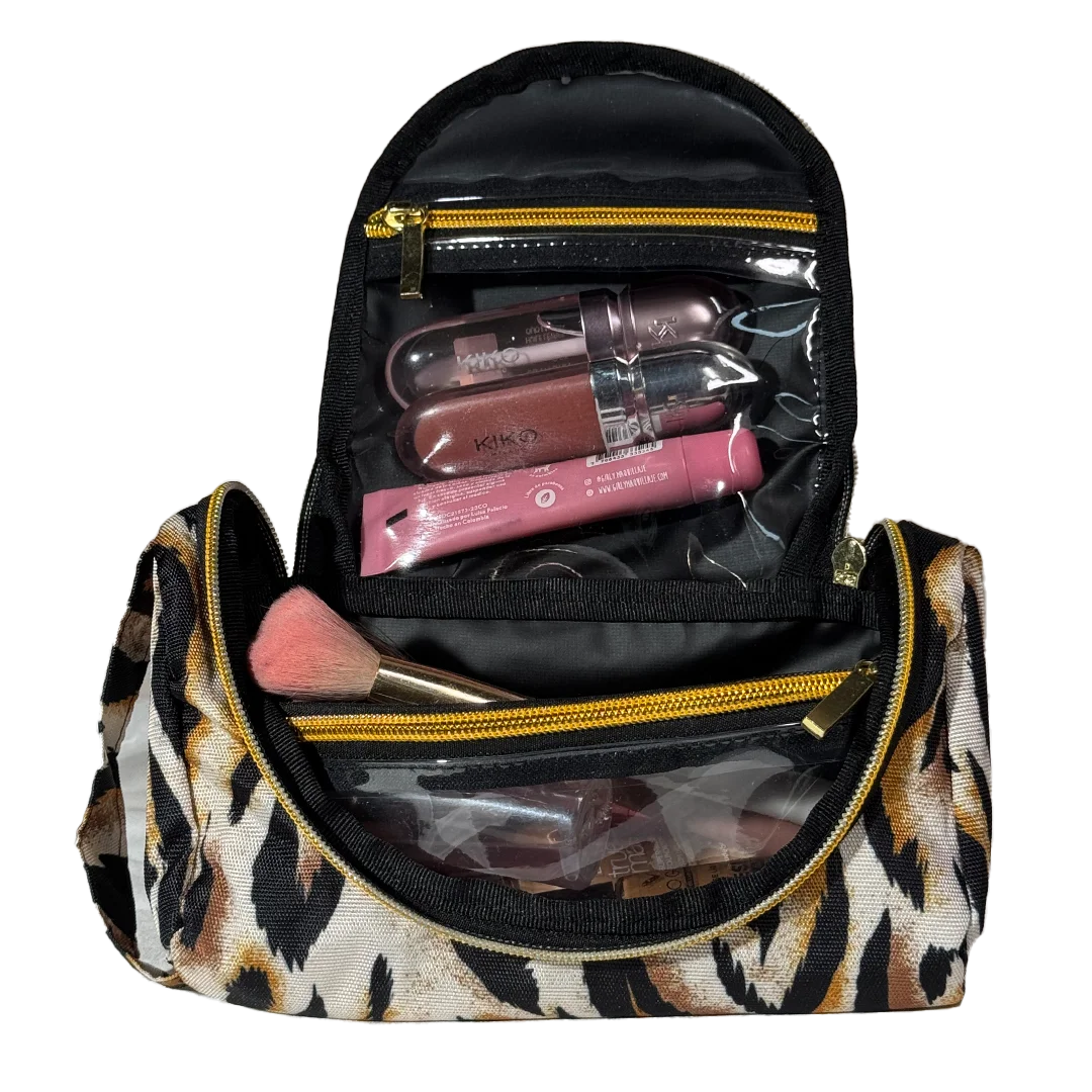 Incluye 1 organizador mediano con diseño estructurado. Además, incluye cogedera tipo bolso de mano. También, tiene tres cierres dorados. Asimismo, incluye dos bolsillos transparentes. Finalmente, trae un espacio interior amplio adicional.